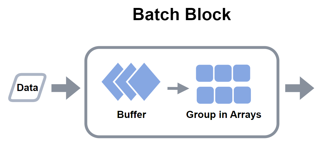 To start the processing data is sent to _batch a BatchBlock that will buffer data initially.